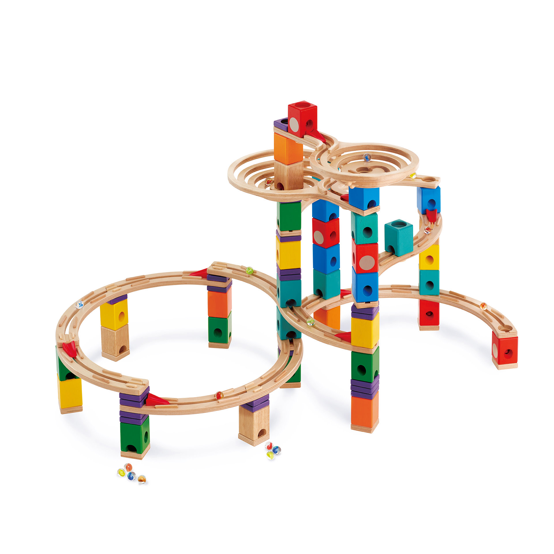 Ultimate este cel mai mare set Quadrilla. Doua palnii in spirala, 12 sine curbate si 10 acceleratoare care maresc puterea ii inspira pe constructori sa proiecteze cel mai bun drum pentru bile. Posibilitati infinite pentru reconfigurarea aspectului. Ajuta la dezvoltarea gandirii spatiale si la intelegerea principiilor stiintei, tehnologiei, ingineriei, artei si matematicii. De asemenea, va…